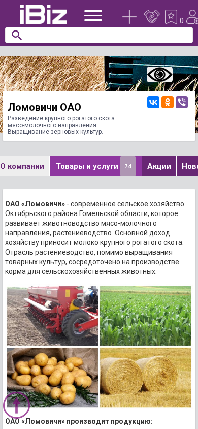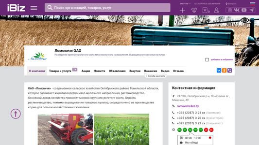 Название / Заголовок | Ломовичи ОАО - Разведение крупного рогатого скота мясо-молочного направления. Выращивание зерновых культур.. 247302, , Ломовичи аг., Минская, 49 |
