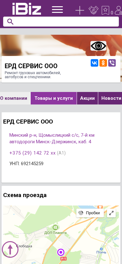 Название / ЗаголовокЕРД СЕРВИС ООО - Ремонт грузовых автомобилей, автобусов и спецтехники.. 0, , Щомыслицкий с/с, 7-й км автодороги Минск-Дзержинск, каб. 4