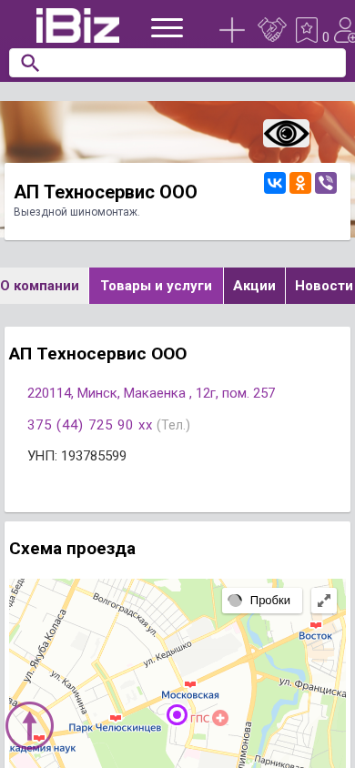 Название / Заголовок | АП Техносервис ООО - Выездной шиномонтаж.. 220114, Минск, , Макаенка , 12г, пом. 257 |