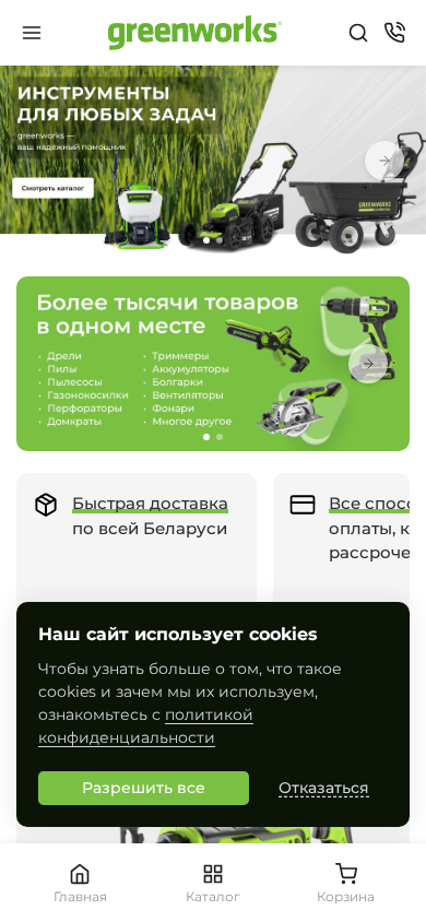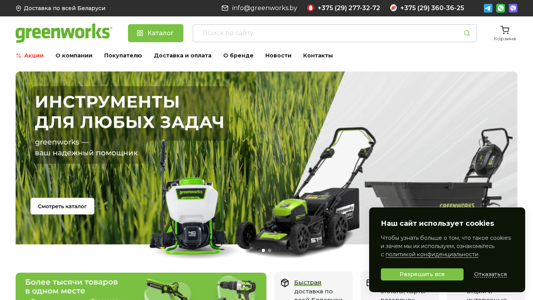 SEO-описание | ➤ Greenworks — интернет-магазин садовой техники, ручного инструмента и запчастей. ⭐ Широкий ассортимент. ✅ Доставка по всей Беларуси. ☎️ +375 (29) 277-32-72 |