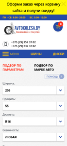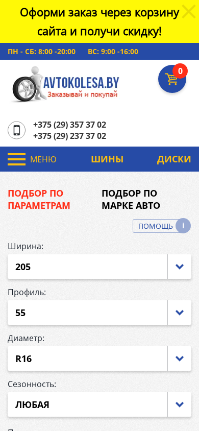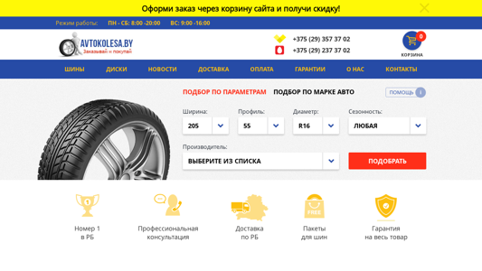 | SEO-описание | Купить шины и диски в Минске недорого можно на сайте avtokolesa.by. Мы занимаемся продажей резины в Беларуси уже ⑩ лет! ✅ Только европейские бренды ✅ Доставка по РБ ✅ Низкие цены ✅ Гарантия. Звоните ☎ +375292373702. |