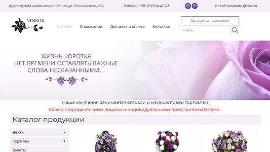 SEO-описание | Продажа ритуальных принадлежностей и товаров оптом в Беларуси по выгодным ценам в компании Неомодуль ✅ Дешевые и элитные ритуальные венки и корзины ✅ Букеты из искусственных цветов ✅ Венки и корзины ритуальные цены опт ✅ Букеты, ритуальные венки и корзины фото на сайте venkor.by |