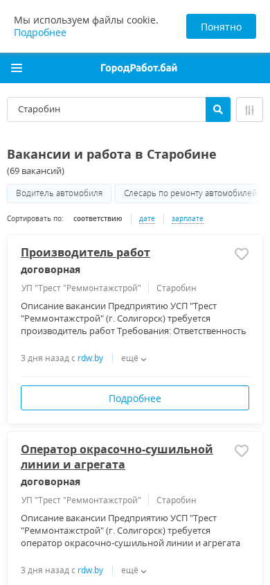 Canonical URL | https://starobin.gorodrabot.by/ |