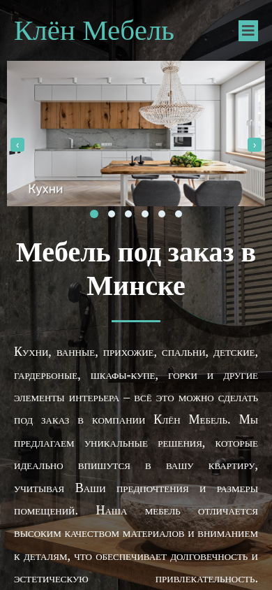 SEO-описание | Клён Мебель предлагает уникальную мебель под заказ в Минске. Мы создаем кухни, ванные, прихожие и многое другое по индивидуальным проектам! |
