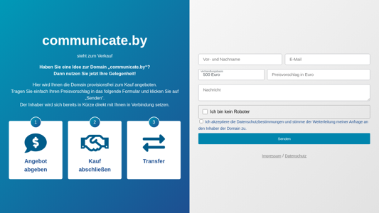 communicate.by wird zum Kauf angeboten!| Название / Заголовок | communicate.by wird zum Kauf angeboten! |