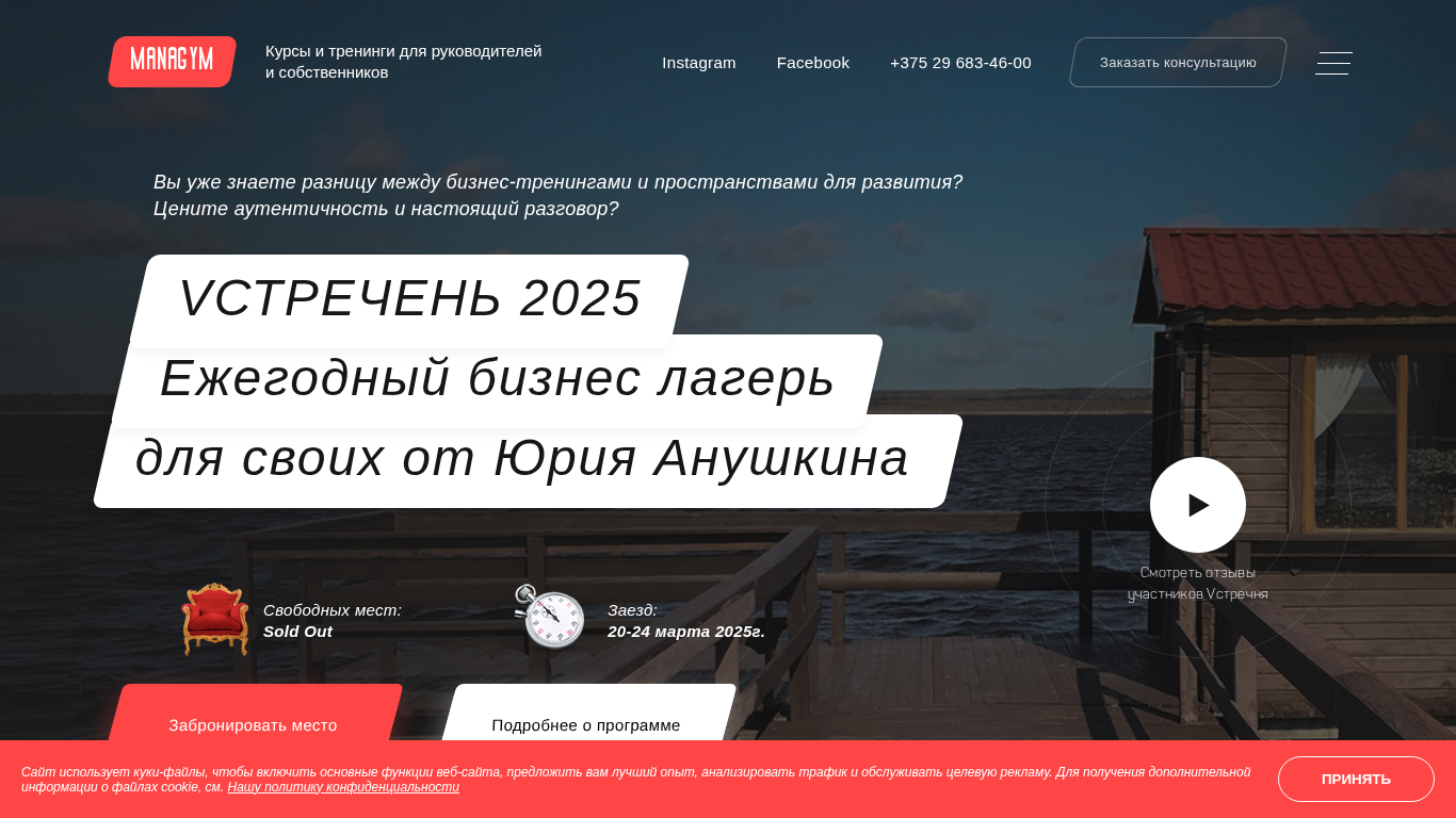 SEO-описание | Уникальный лагерь для предпринимателей – Vстречень! Встречи с новыми неординарными личностями, перезагрузка, новые связи и множество полезной информации, которая по может вашему бизнесу. |