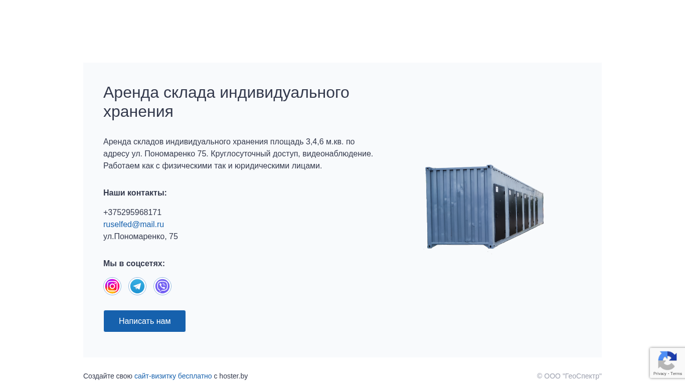 SEO-описание | Аренда складов индивидуального хранения площадь 3,4,6 м.кв. по адресу ул. Пономаренко 75. Круглосуточный доступ, видеонаблюдение. Работаем как с физическими так и юридическими лицами. |
