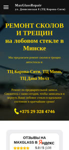 SEO-описаниеРемонт сколов и трещин лобового стекла авто от профессионалов. Бесплатный выезд по Минску. Мы вернем лобовое в идеальное состояние в кратчайшие сроки!