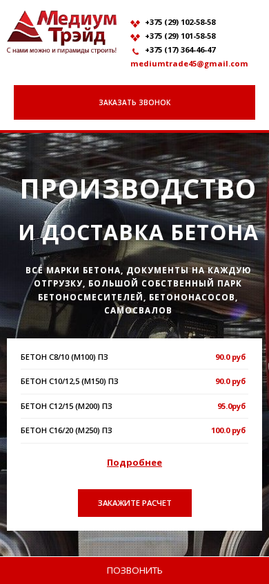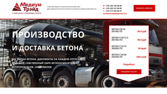 Название / ЗаголовокПроизводство и доставка бетона в Минске - ЧТУП Медиумтрэйд