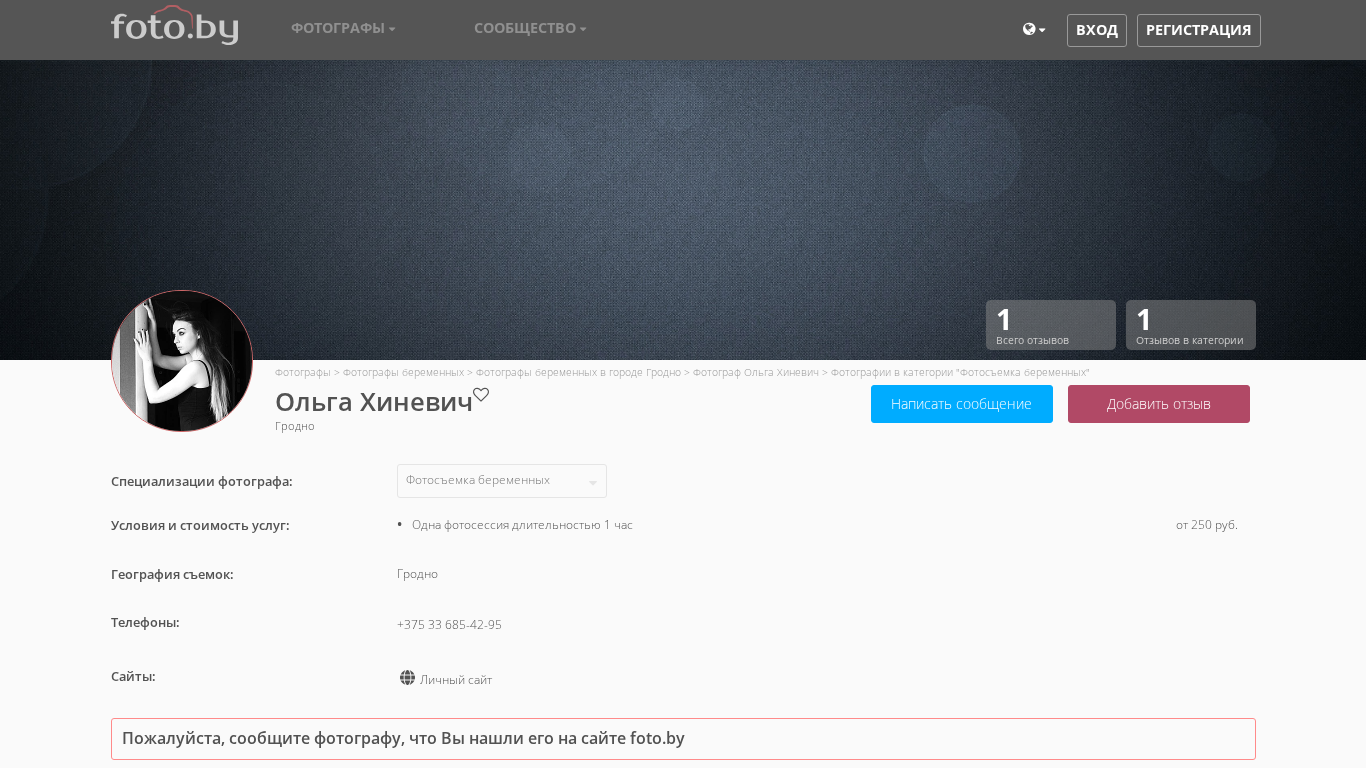 SEO-описание | Фотографии в категории "Фотосъемка беременных". Сайт фотографа Ольга Хиневич. Я работаю как фотограф для индивидуальной фотосъемки в городах Гродно, Скидель, а также по всей Беларуси. |