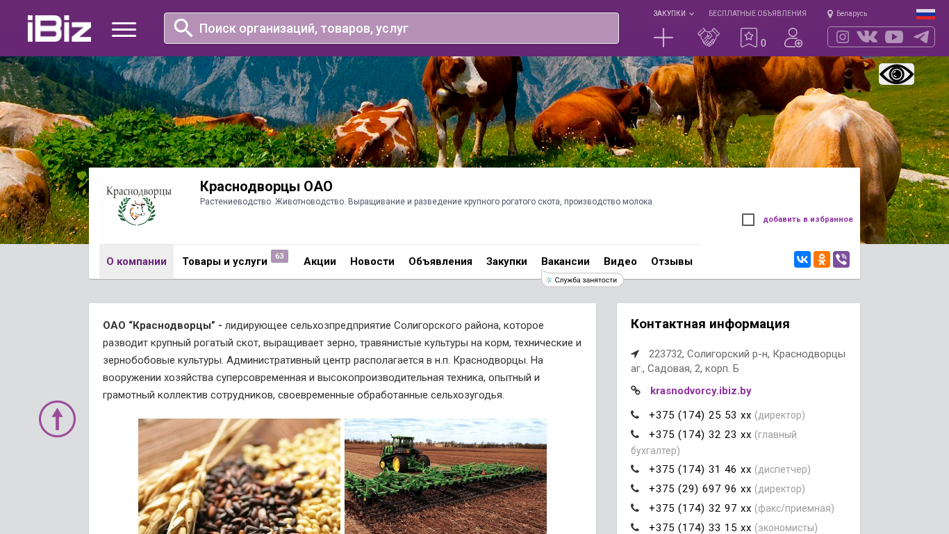 SEO-описание | Краснодворцы ОАО - Растениеводство. Животноводство. Выращивание и разведение крупного рогатого скота, производство молока. . Схема проезда, контактные телефоны, адрес компании Краснодворцы ОАО. 223732, , Краснодворцы аг., Садовая, 2, корп. Б |