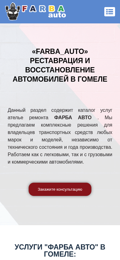Название / Заголовок | Реставрация и восстановление автомобилей в Гомеле — ФАРБА АВТО реставрация и восстановление автомобилей в Гомеле FARBA_AUTO |