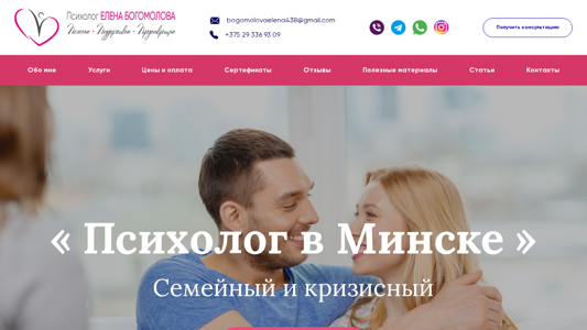 SEO-описание | Услуги лучшего психолога «Елены Богомоловой» в Минске ⭐ Цены на консультацию: очную или ONline доступные ⭐ Индивидуальные и групповые встречи ⭐ Звоните!☎️ |