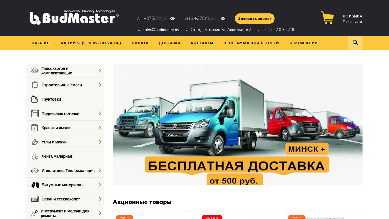 SEO-описание | Стройматериалы оптом в строительном интернет-магазине Budmaster 🔥 доступные цены 🚚 бесплатная доставка 📋 гарантия качества 📞 Звоните или оформляйте заказ на сайте! |