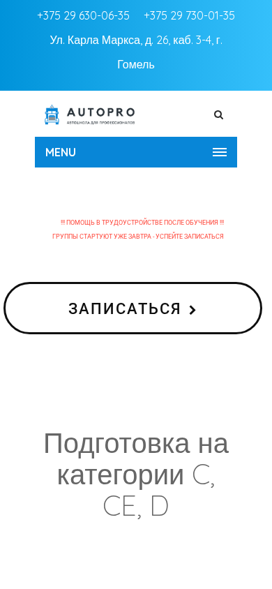 Название / Заголовок | Автошкола AUTOPRO - подготовка на категории C, D, E в Гомеле |