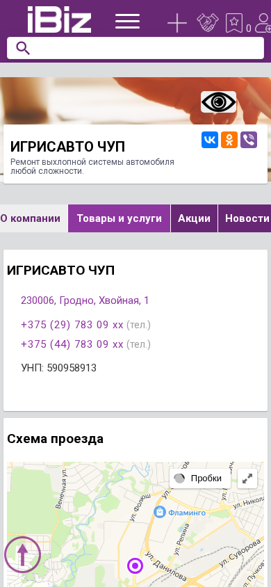 Название / Заголовок | ИГРИСАВТО ЧУП - Ремонт выхлопной системы автомобиля любой сложности.. 230006, Гродно, , Хвойная, 1 |