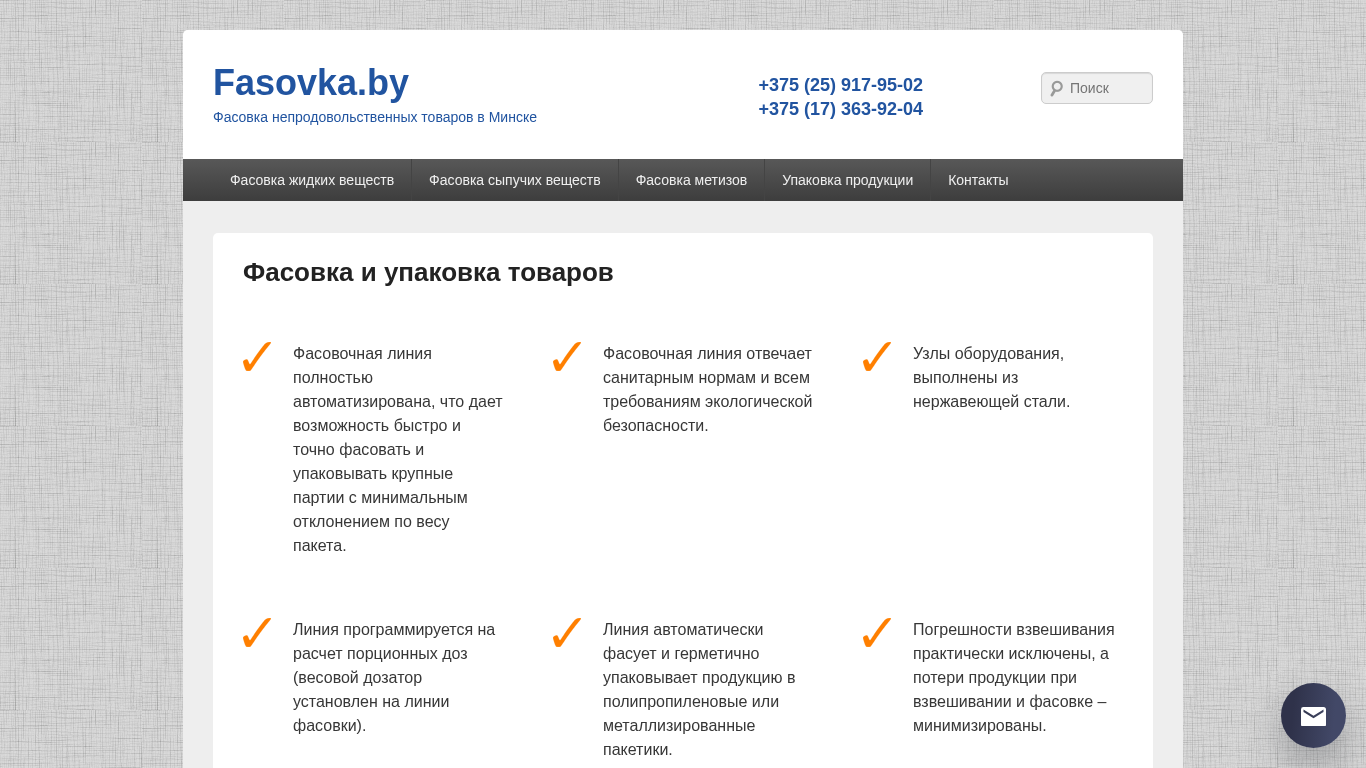 Название / Заголовок | Фасовка и упаковка товаров непродовольственных и продовольственных в Минске |