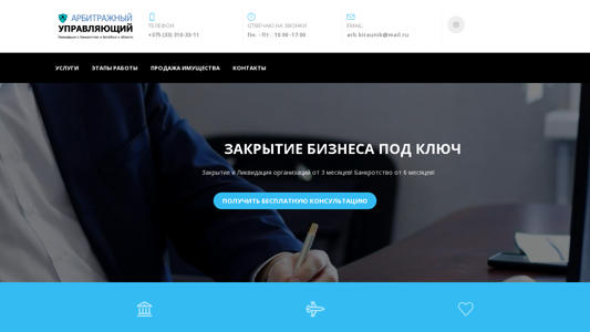 | AI-анализ | --- The web project "Arbitrazhnoy Upravlyayushchiy | Pomoshch' pri Bankrovtstve" (Arb.Kiraunik) is a Belarusian-language website offering assistance to organizations and individuals undergoing bankruptcy proceedings. The site guarantees reliable and professional services with short completion times and moderate prices. The homepage contains information about various bankruptcy procedures, including the sale of assets and business closure. Users can contact the company via phone or email for consultations. The site has been operational since 2017 and has completed 29 projects in the areas of business liquidation and bankruptcy. The team consists of three certified specialists. Besides providing bankruptcy services, Arb.Kiraunik also offers financial rehabilitation consultations for companies and assistance with business sales. Users can request a free consultation by submitting a form on the site or contact |