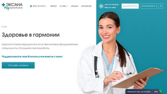 | SEO-описание | Эксана медицинский центр в Минске. Опытные врачи, приятные цены. Запись на прием по телефону +375 (17) 215-02-02 |