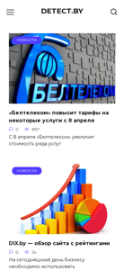 | AI-анализ | This online resource is a Belarusian website with a title of "DETECT.BY" and a description that includes the words "каталог" (catalog), "новости" (news), and "информация" (information) multiple times. The website features a search function and sections for catalogs and news. There are several news articles about Beltelecom increasing tariffs on some of its services from April 8th. Another article reviews the website DiX.by and its ratings. The website also has sections for a leisure and rehabilitation complex, a bathhouse, a company called Леди-Фуршет, and information about the water brands Жодинская and Славная. There is also a catalog for the composition of an automobile first-aid kit and a catalog for the water brand Боровая. Additionally, there are sections for scenarios for paintball and pagination for |
