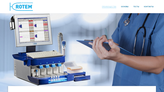 | AI-анализ | The website Rotem.by is dedicated to providing information about a medical testing device called ROTEM. The site highlights the benefits of this device, which includes automated pipetting for standardized volumes, one-time use reagents for quick and reliable results, a sensor screen for easy management, and first results within 5-10 minutes. The website emphasizes that ROTEM technology distinguishes itself from classical clotting tests by showing the kinetics of all stages of blood clotting, taking into account the contributions of both plasma and cellular (platelets, red blood cells, white blood cells) components to hemostatic reactions, as well as fibrinolysis. This technology can help detect early signs of intravascular blood coagulation and hypocoagulation caused by deficiencies in blood clotting factors, diagnose platelet aggregation disorders, hyperfibrinolysis |