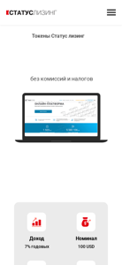 | AI-анализ | The portal Invest.status-leasing.by is a financial leasing company website offering token investments with a fixed annual return of 7% in USD. The company, OOO "Status Lizing," is registered in Belarus and operates in the financial leasing sector. The website provides information on the company white paper, financial reporting, and contact details for purchasing tokens online. The tokens, representing a loan to the company, have a fixed term, with quarterly interest payments and a maturity date for full repayment. The company, led by Director Andrey Koshevoy, aims to use the funds raised through the ICO for new lending projects, improving service quality, expanding the service offering, increasing the volume of services, and reducing the cost of providing services. The website is hosted on the Finstore.by platform of BelVEB Bank. |