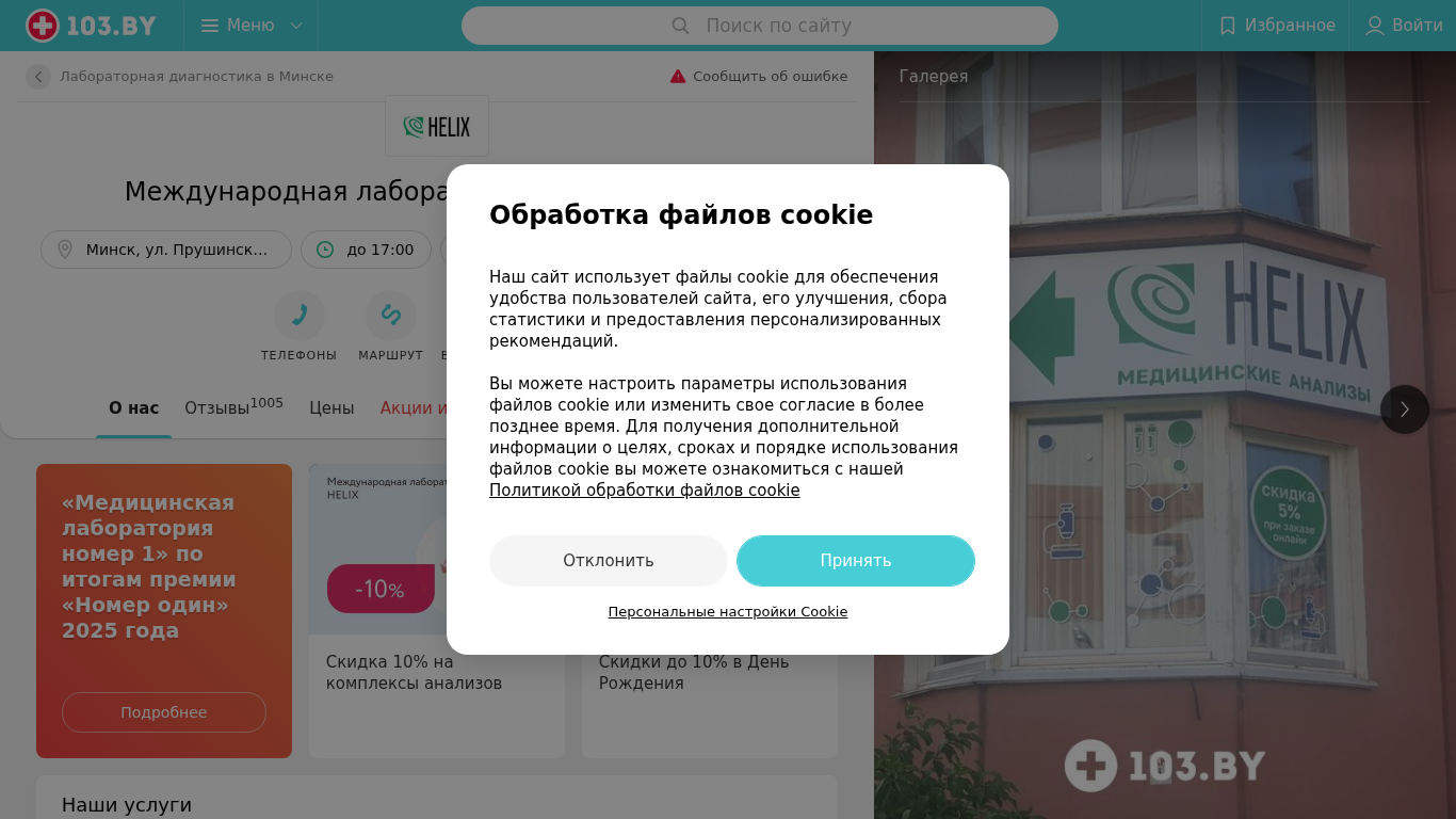 SEO-описаниеМеждународная лаборатория HELIX (ХЕЛИКС) Минск ул. Прушинских 7 – телефоны, время работы, отзывы и схема проезда в каталоге медицинского портала 103.by.