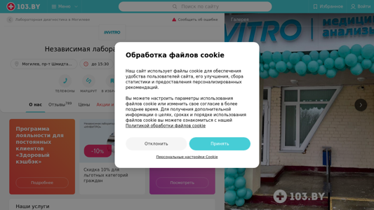 | SEO-описание | Независимая лаборатория ИНВИТРО Могилев пр-т Шмидта 54а – телефоны, время работы, отзывы и схема проезда в каталоге медицинского портала 103.by. |