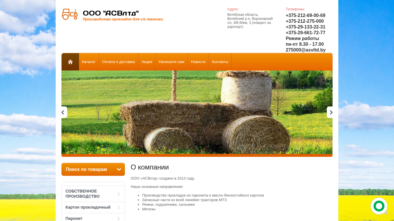 SEO-описание | Производство прокладок к тракторам МТЗ, сельхозтехнике и спецтехнике в Витебской области | ООО АСВлтд |