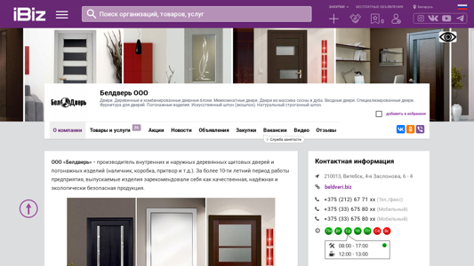 Название / Заголовок | Белдверь ООО - Двери. Деревянные и комбинированные дверные блоки. Межкомнатные двери. Двери из массива сосны и дуба. Входные двери. Специализированные двери. Фурнитура для дверей. Погонажные изделия. Искусственный шпон (экошпон). Натуральный строганный шпон.. 210013, Витебск, , 4-я Заслонова, 6 - 4 |