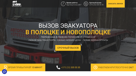 SEO-описание | Заказать эвакуатор в Полоцке и Новополоцке. Работаем круглосуточно. Перевозка транспорта до 7 тонн. Оперативная подача эвакуатора от 15 минут. |