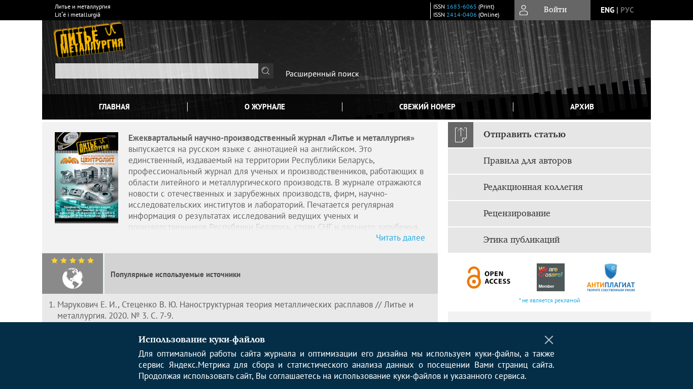 SEO-описание | Научно-производственный журнал «Литье и металлургия» |