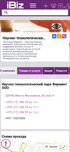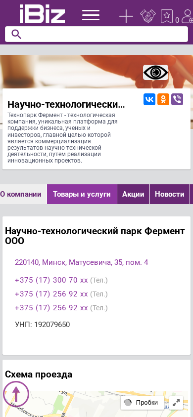 Название / Заголовок | Научно-технологический парк Фермент ООО - Технопарк Фермент - технологическая компания, уникальная платформа для поддержки бизнеса, ученых и инвесторов, главной целью которой является коммерциализация результатов научно-технической деятельности, путем реализации инновационных проектов.. 220140, Минск, , Матусевича, 35, пом. 4 |