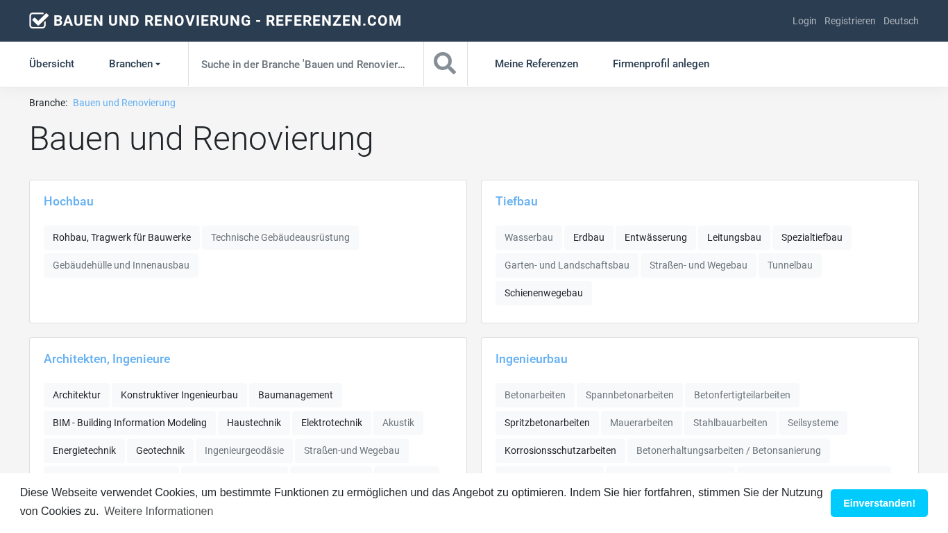 SEO-описание | Auf referenzen.com präsentieren Unternehmen der 'Bauen und Renovierung'-Branche(n) ihr Leistungsportfolio anhand von aussagekräftigen Projekt-Referenzen. |