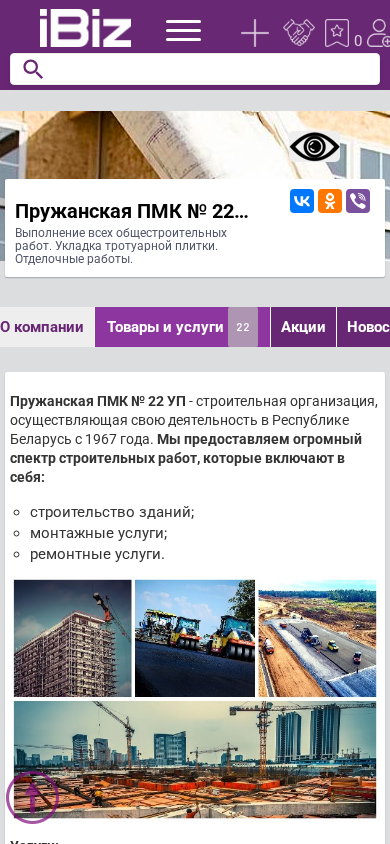 Название / ЗаголовокПружанская ПМК № 22 УП - Выполнение всех общестроительных работ. Укладка тротуарной плитки. Отделочные работы.. 225133, Пружаны, , Лазо, 18