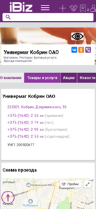 Название / Заголовок | Универмаг Кобрин ОАО - Магазины. Ресторан. Бытовые услуги. Аренда помещений.. 225301, Кобрин, , Дзержинского, 93 |