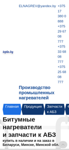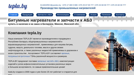 Название / Заголовок | Битумные нагреватели и запчасти к АБЗ купить в наличии и на заказ в Беларуси, Минске, Минской обл. | ООО «tepla.by» |