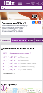 Название / Заголовок | Дрогичинское ЖКХ КУМПП ЖКХ - Оказание жилищно-коммунальных услуг населению и юридическим лицам. Эксплуатация жилищного фонда, теплоснабжение, сбор, очистка и распределение воды, удаление и очистка стоков.. 225612, Дрогичин, , Освобождения, 5 |