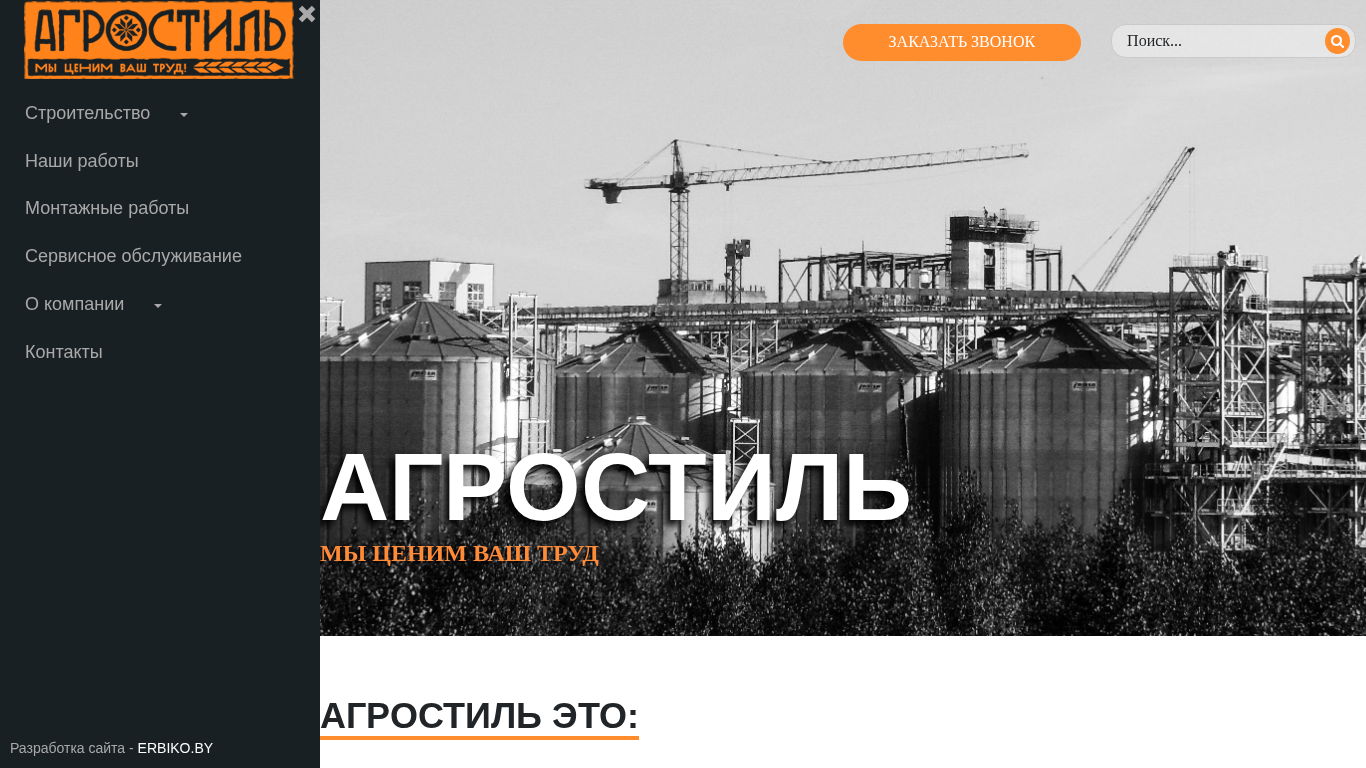 SEO-описание | ООО Агростиль - строительная, инжиниринговая, производственная компания, обладающая большим опытом строительства, элеваторов, свинокомплексов, птицефабрик, комбикормовых заводов, зерносушильных комплексов, промышленных сельскохозяйственный объектов. ООО Агростиль осуществляет: Проектирование, ... |