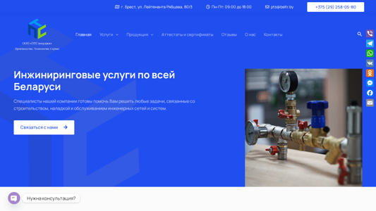 | AI-анализ | The portal PTService.by is a Belarusian company offering engineering services across Belarus. They provide solutions for all construction, installation, and maintenance tasks related to engineering networks and systems. |