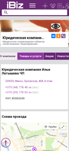 | Название / Заголовок | Юридическая компания Ильи Латышева ЧП - Юридическое сопровождение субъектов хозяйствования. Лицензирование.. 220053, Минск, , Орловская, 40А, 8 этаж |