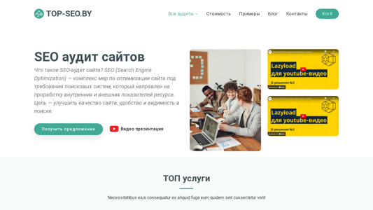 | AI-анализ | This website is a Belarusian SEO services provider named "ЕШылт ижядотчидлтяило" (translation: "The One Who Needs Help") located at top-seo.by. The title of the website is not clear without additional context. The description includes information about the various SEO audit services offered, such as on-page, off-page, technical, and usability audits, as well as audits for internet shops and conversion rates. The website also offers audits for competitors and external optimization. The description mentions that a full SEO audit includes forming a list of search queries, and auditing the website structure, competitive environment, headings, and meta descriptions. |
