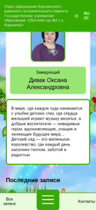| AI-анализ | The portal "Sad2.edu-korelichi.by" is a Belarusian government educational institution website for the Kindergarten No.2 in the town of Korenichi. The site features news articles and information about the kindergarten, including topics related to education, the year 2025, and the town of Korenichi. Keywords include words related to education, the year, kindergarten, town, Belarus, and various other terms. The site's top words are 'education' (12 occurrences), 'year' (10), 'kindergarten' (8), 'republic' (8), 'Belarus' (8), '2025' (8), 'Korenichi' (6), 'more' (6), 'institution' (5), 'nutrition' (5), 'im |