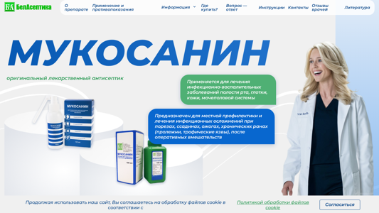 Название / Заголовок | Мукосанин - раствор и спрей для горла - оригинальный лекарственный антисептик | ЗАО «БЕЛАСЕПТИКА» |