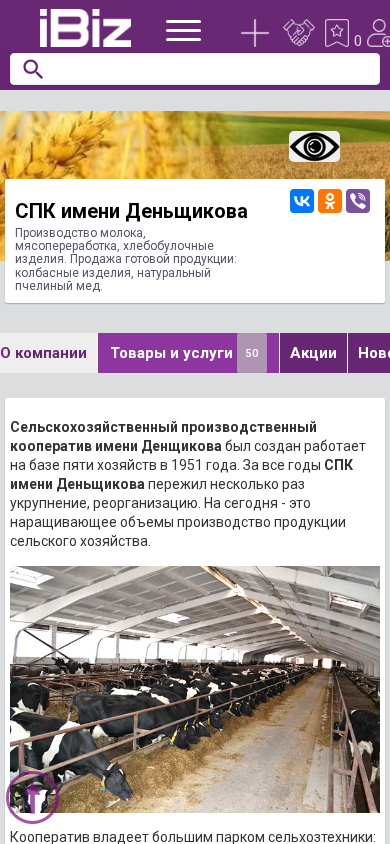 Название / Заголовок | СПК имени Деньщикова - Производство молока, мясопереработка, хлебобулочные изделия. Продажа готовой продукции: колбасные изделия, натуральный пчелиный мед.. 231716, , Луцковляны аг., Юбилейная, 6 |