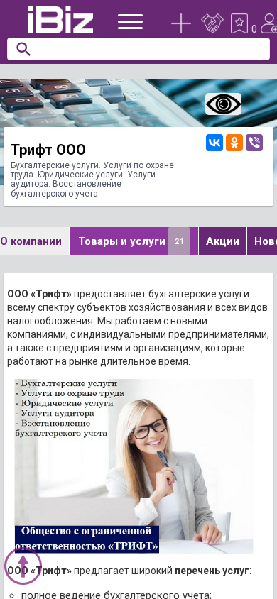 Название / Заголовок | Трифт ООО - Бухгалтерские услуги. Услуги по охране труда. Юридические услуги. Услуги аудитора. Восстановление бухгалтерского учета.. 230012, Гродно, Доватора, 8 |