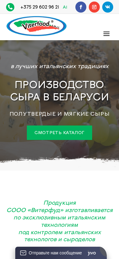 SEO-описание | Свежие, вкусные, качественные, полезные мягкие и полутвердые сыры, произведенные СООО «Витерфуд» по итальянским технологиям: моццарелла, рикотта, качотта, имеретинский сыр. |