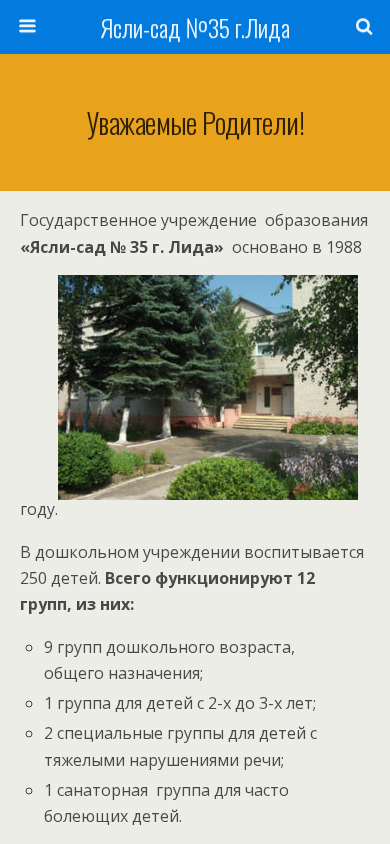 Название / Заголовок | Уважаемые родители! - Ясли-сад №35 г.Лида |