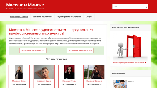 SEO-описание | Объявления частных массажистов Минска. Массаж на дому: антицеллюлитный, тайский, расслабляющий. Массаж для мужчин и женщин. Детский массаж. Massazhisty.by - Массажисты бай |