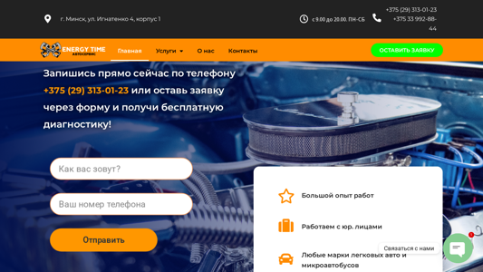 | Название / Заголовок | Автосервис в Минске на ул.Тимирязева | Ремонт и диагностика автомобилей | СТО ЭНЕРДЖИ-ТАЙМ |